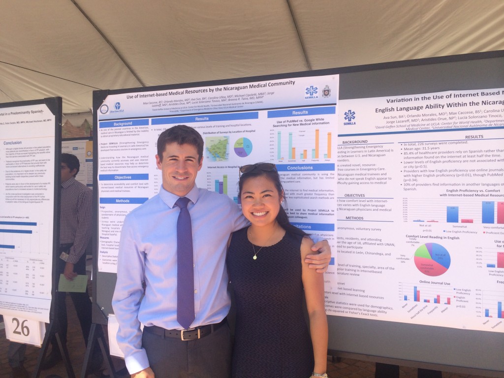 As Project SEMILLA continues to develop educational materials on emergency themes, an important question is how to disseminate them most effectively. Project SEMILLA members designed a survey of Nicaraguan physicians and medical students to evaluate comfort with internet-based resources to decide whether internet-based dissemination of course materials was feasible. UCLA Medical Students Max Caccese and Ava Sun were chosen by the Center for World Health at UCLA as the recipients of a summer research award that allowed them to spend the summer of 2014 in Leon, Nicaragua working on this project. Dr. Orlando Morales at UNAN Leon and Dr. Carolina Ulloa at UNAN Managua guided them through the survey collection. They surveyed over 200 Nicaraguan physicians and trainees in three cities. Initial results were presented at the UCLA Josiah Brown Poster Fair on July 31, 2014.
